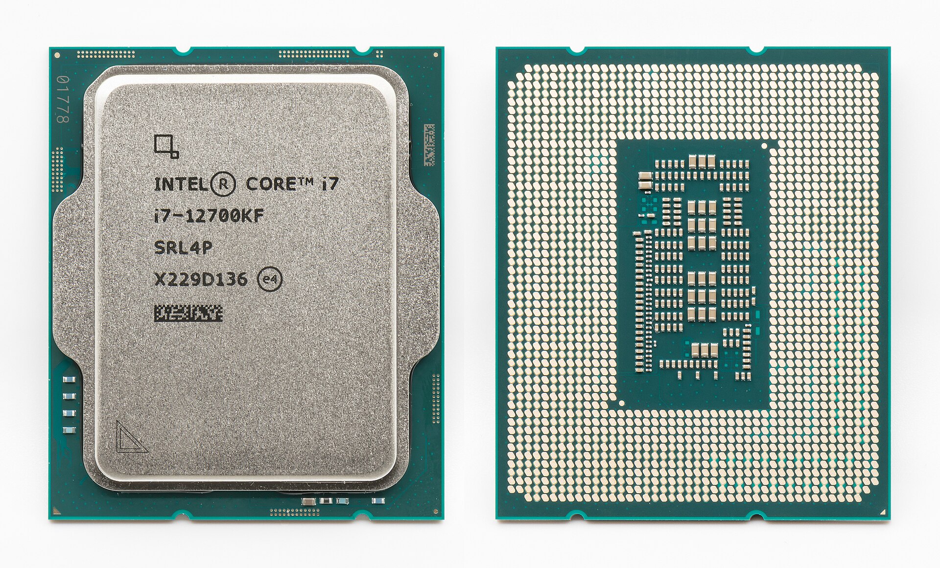 Intel Core i7-12700KF (face avant et dos avec contacts)#